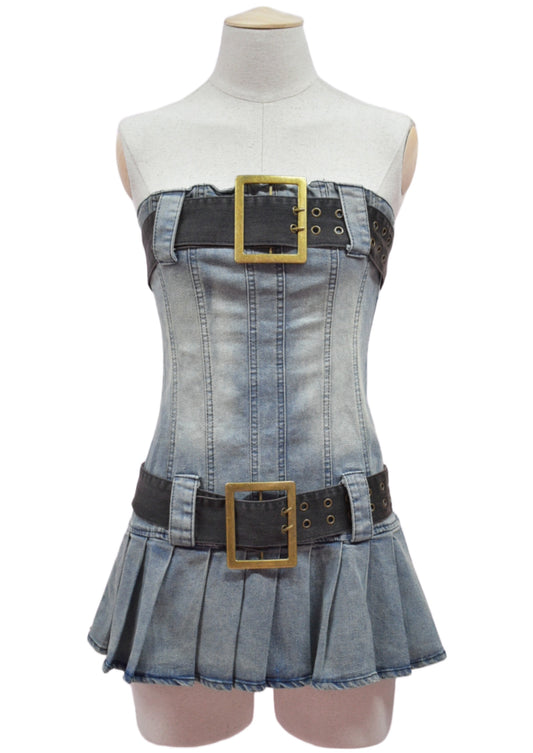 Agotado[Liz] Vestido Denim Ribbon